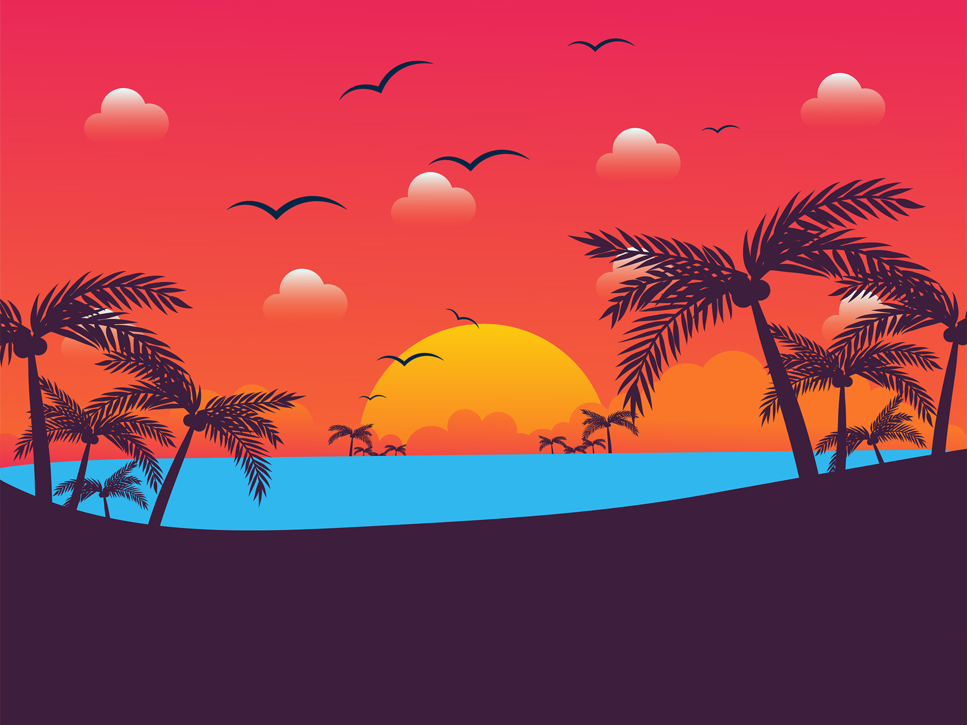 Sunset Landscape Background Illustration